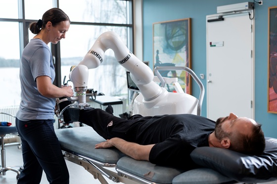De Robert-robot heeft een geheel andere missie. Dit systeem helpt patiënten mobiel te worden na een operatie of beroerte. De innovatieve oplossing van de Deense fabrikant Life Science Robotics is gebaseerd op een LBR Med van KUKA, een robot die dankzij zijn medische precertificering geschikt is voor integratie in medische toepassingen.